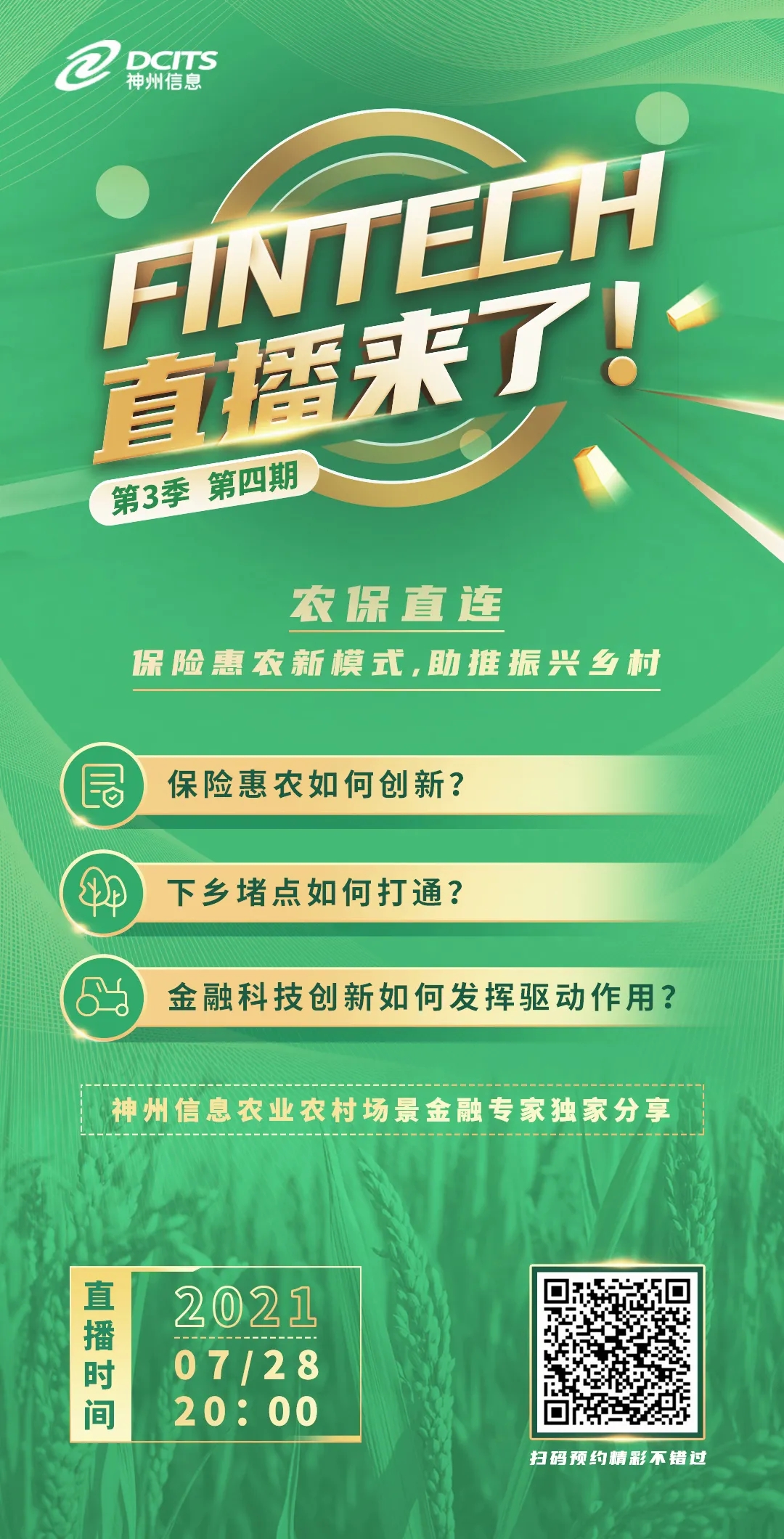 今晚八点丨【FinTech直播来了 第3季】第四期:农保直连——保险惠农新模式,助推振兴乡村